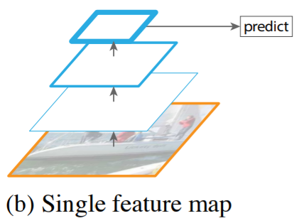 하지만 아웃풋으로 사용하는 것은 가장 저해상도의 피쳐맵이었다. 이를 Single feature map이라 한다.